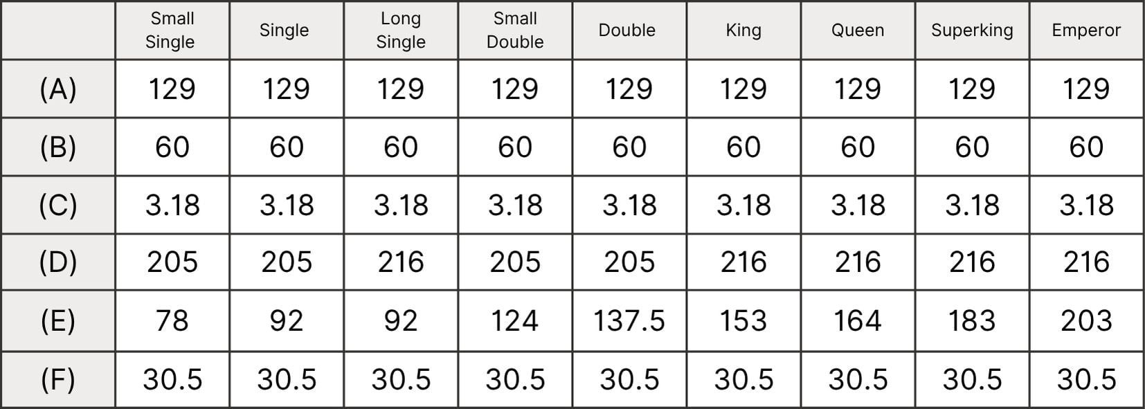 | Small Double (120cm x 190cm) | Emperor (200cm x 200cm) |
